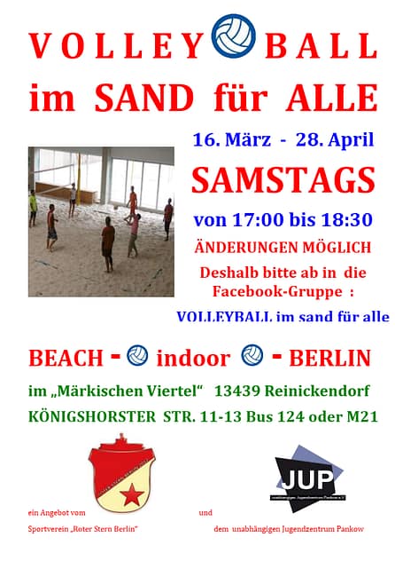 Wir werden unter anderem Freizeit-Volleyballer*innen aus Jugendzentren wie dem JUP (Unabhängiges Jugendzentrum Pankow) und Besucher*innen von Begegnungsprojekten wie dem „Cafe ohne Grenzen“ ansprechen und auch Geflüchtete aus Unterkünften wie der Containeranlage im Pankower Ortsteil Französisch-Buchholz abholen. Unser Angebot soll leistungsunabhängig sein und ist somit auch für eher untrainierte Neueinsteiger*innen offen .