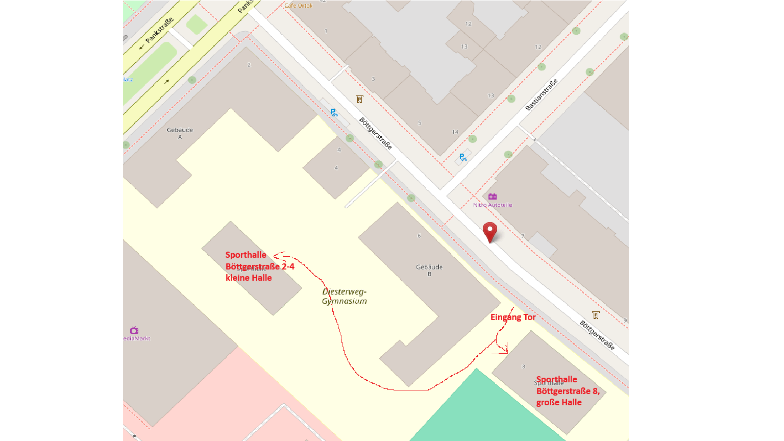 - Sonntag 15:30 Uhr - 18:30 Uhr, Böttgerstrasse 2-4, kleine Halle (siehe Wegbeschreibung Bild unten)