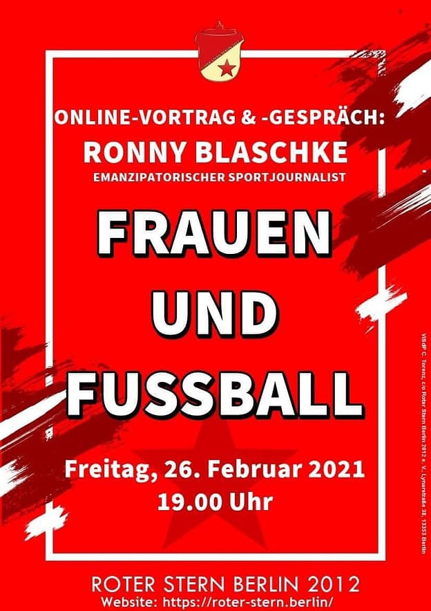 Liebe SportlerInnen, liebe FreundInnen des Roten Stern, Hiermit laden wir alle Interessierten zu unserer ersten öffentlichen Online-Veranstaltung ein. Wir haben den emanzipatorischen Sportjournalisten Ronny Blaschke eingeladen, um am Freitag den 26. Februar ab 19:00 über den Themenkomplex „Frauen und Fußball“ zu berichten, zu dem er schon viele Beiträge gemacht hat (u.a. für den Deutschlandfunk). […]